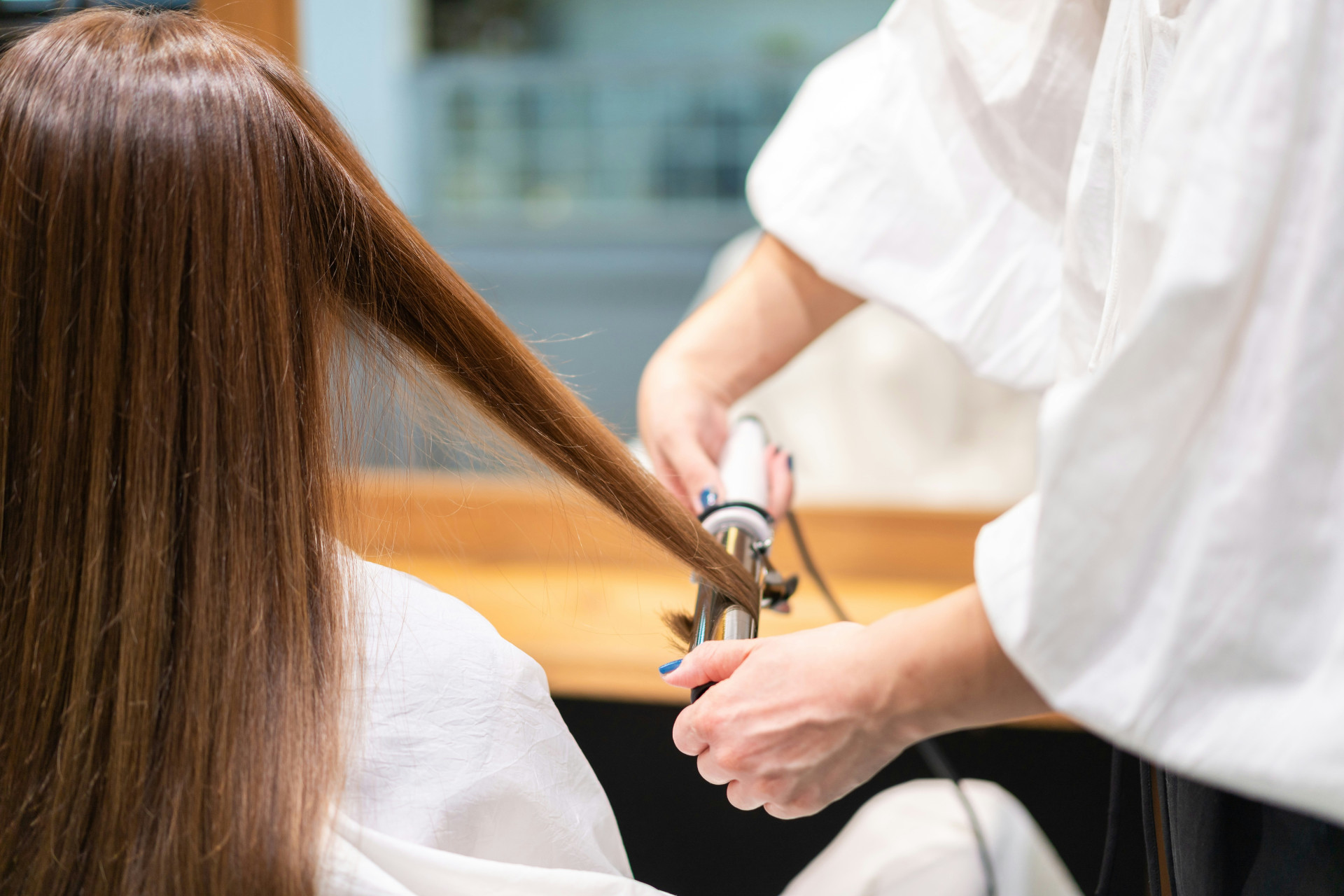 - Tykt krøllejern (32–38 mm) giver store, bløde bølger og et naturligt fald – perfekt til et afslappet hverdagslook.